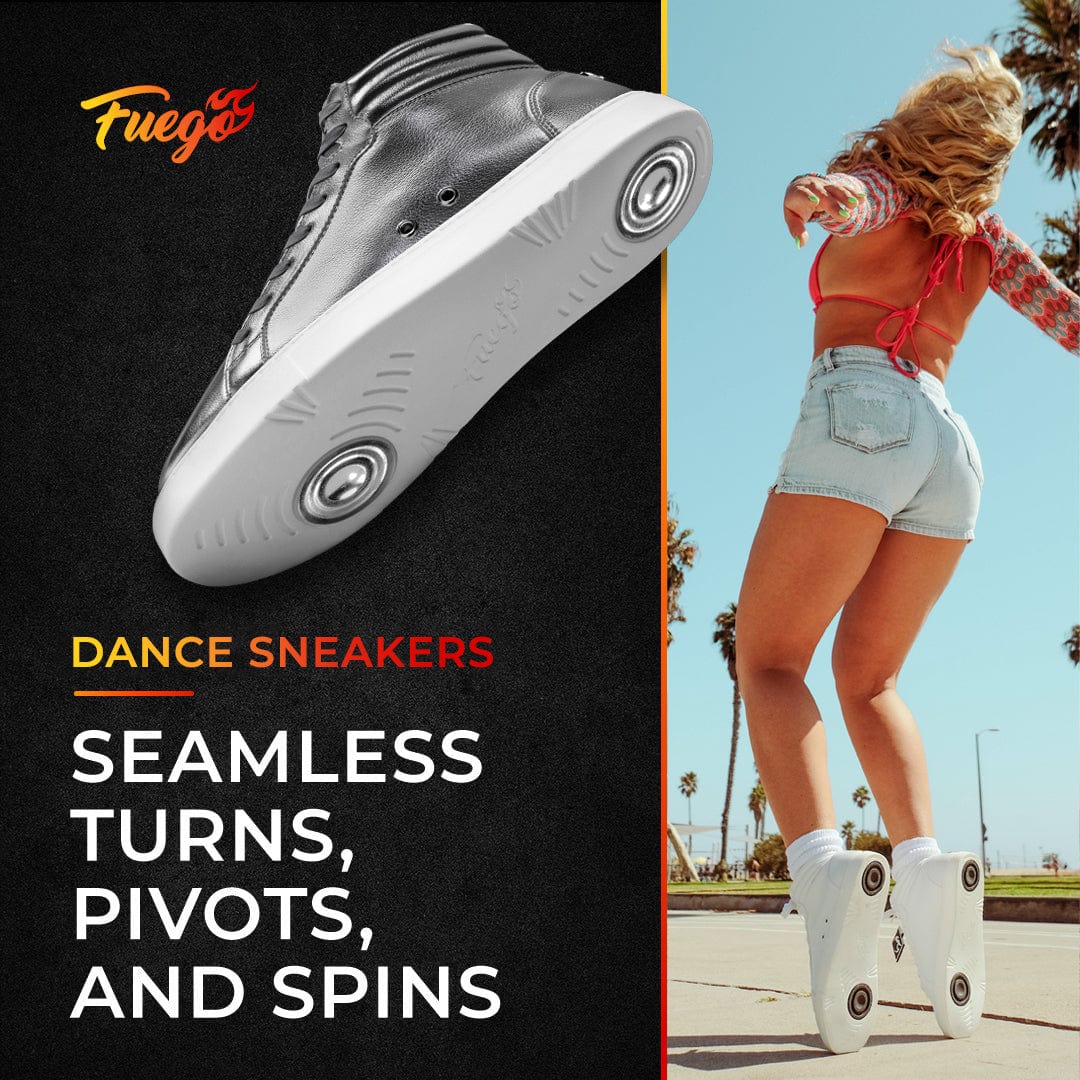 It's undeniable: shuffle is taking over. And it's time you had a shuffle sneaker to cut all those dope shapes with. Meet Fuego: a sneaker (finally) engineered for dancers. Its lighweight construction keeps you dancing for days at a time. The patented sole is designed to help you pivot and spin — kiss that surface anxiety goodbye. And our super cushioned insole absorbs the shock of those high-impact movements.