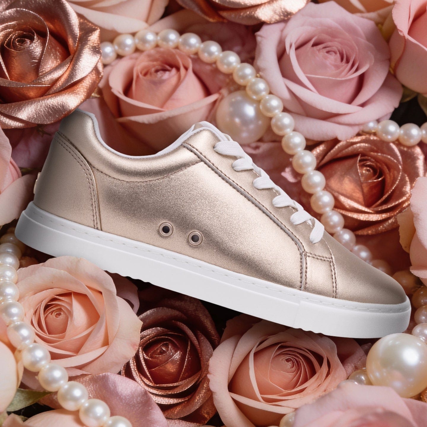 Rose Gold Low-Top je navržen tak, aby probudil váš květ. Teplý, jemný růžově zlatý povrch odhaluje měkký, rozptýlený lesk – odhalený ve vašem vlastním rytmu. Čisté linie a prémiové veganské materiály vytvářejí moderní luxusní siluetu, kde růst vede a záře přirozeně následuje.