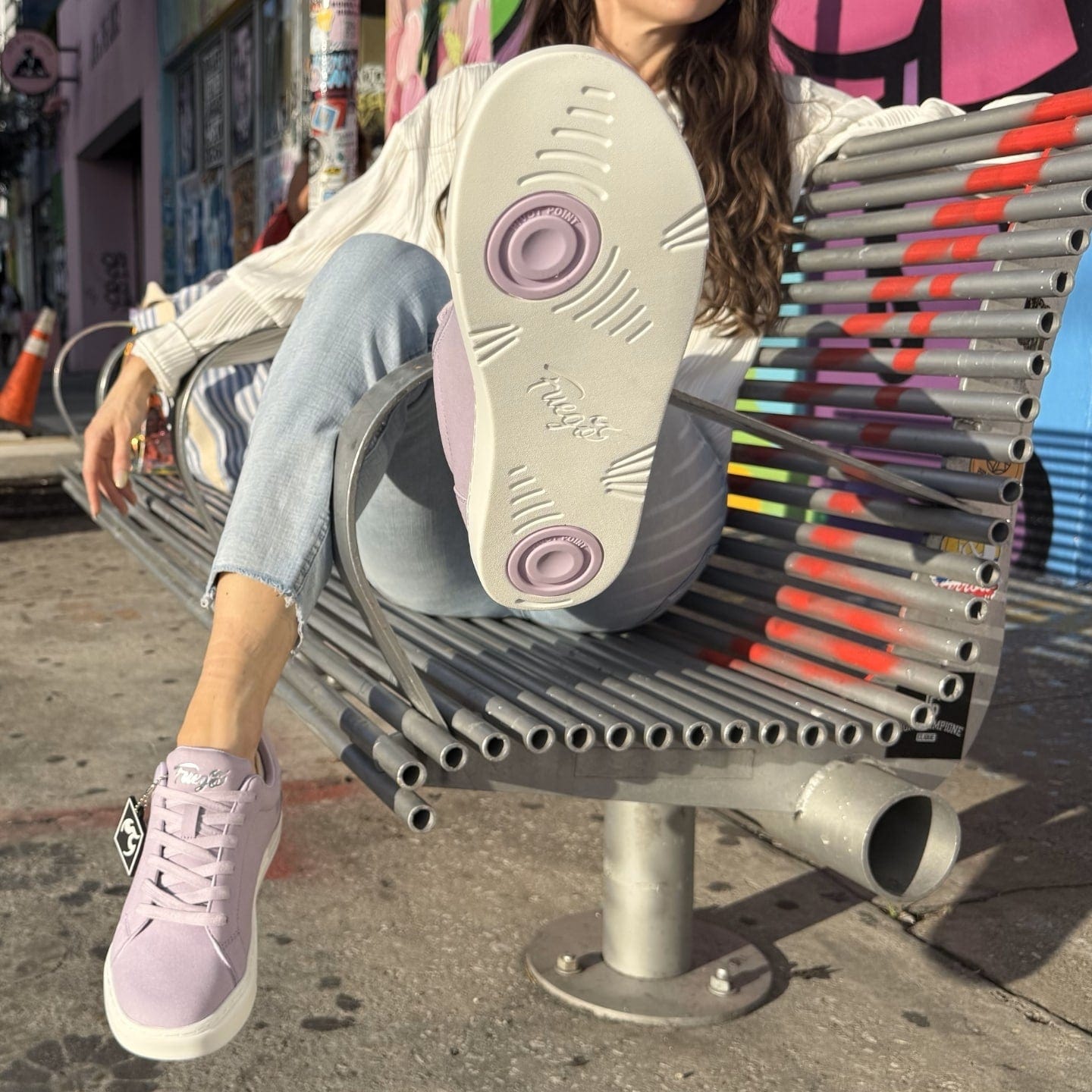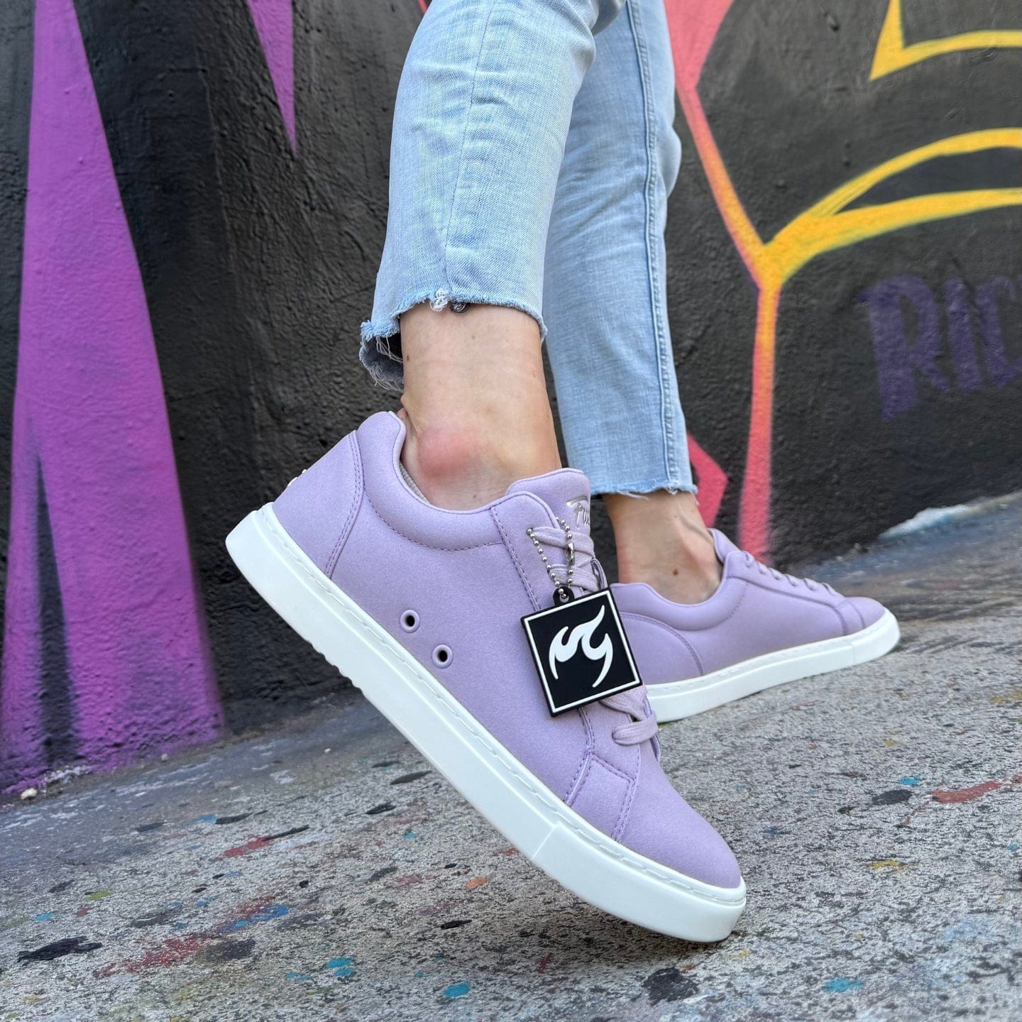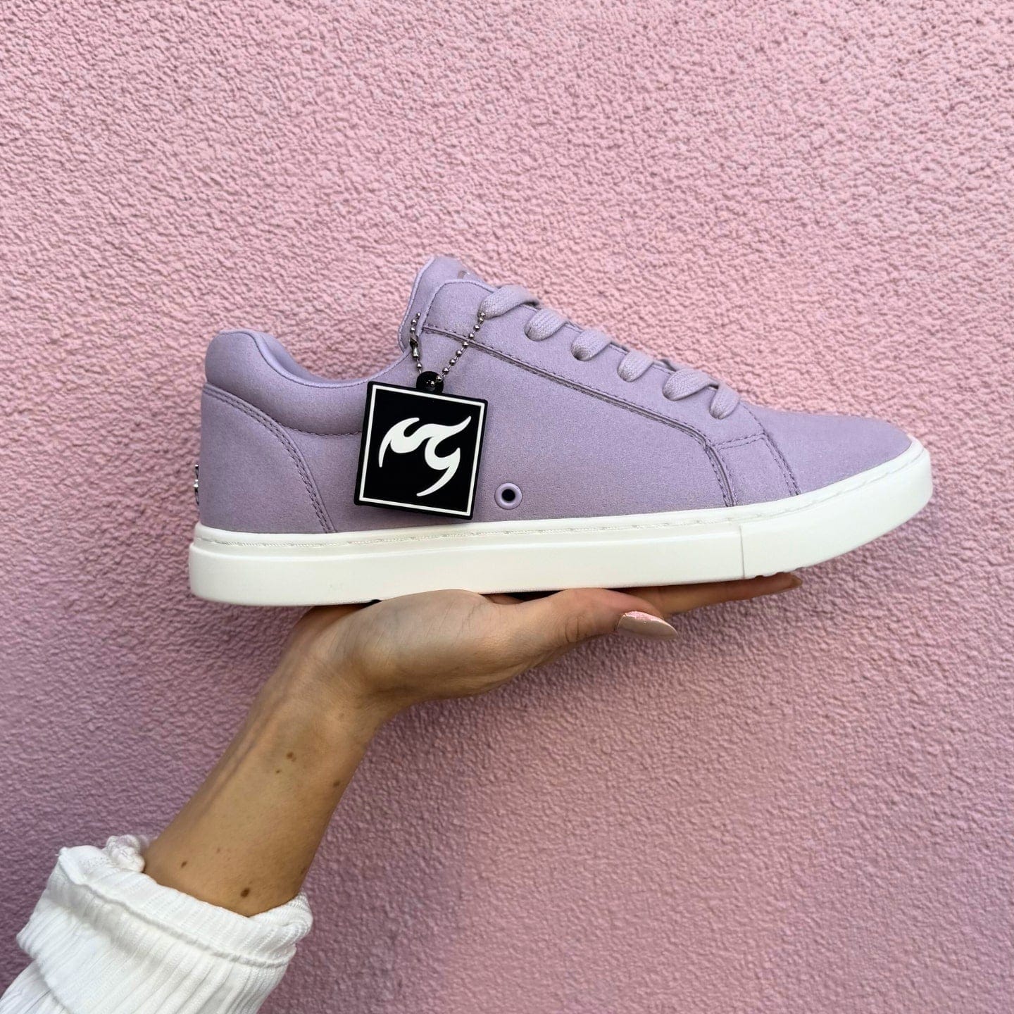 Esta suave zapatilla lavanda aporta un toque sutil de color a cualquier look. El tono pastel la mantiene fresca durante todo el año, mientras que la gamuza vegana añade una textura elegante y refinada. Estilosa, cómoda y con un chic sin esfuerzo: perfecta para dondequiera que te lleve el día.