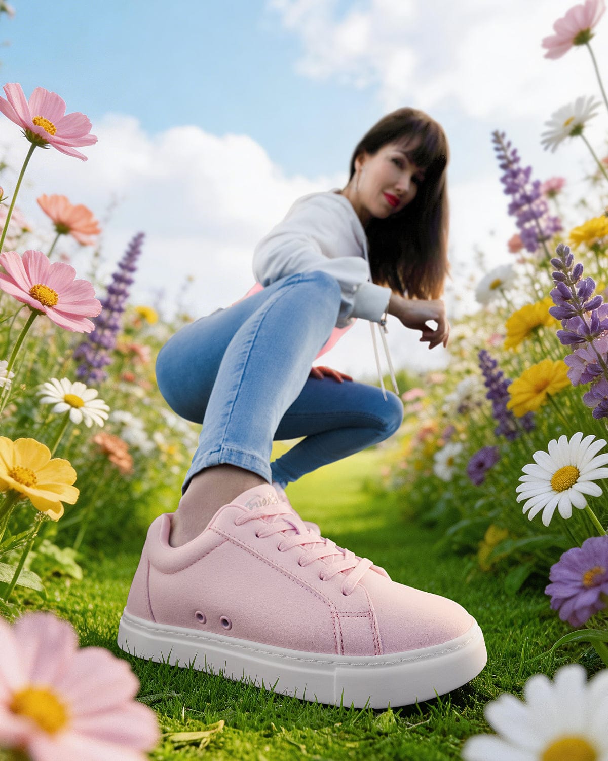 The Pink Low-Top redefines what it means to step into something new. Rendered in soft pink suede, a color that signals renewal, clarity, and forward motion, it brings a sense of lightness to every movement. Clean lines and premium vegan materials create a refined silhouette built for a new season of motion.
