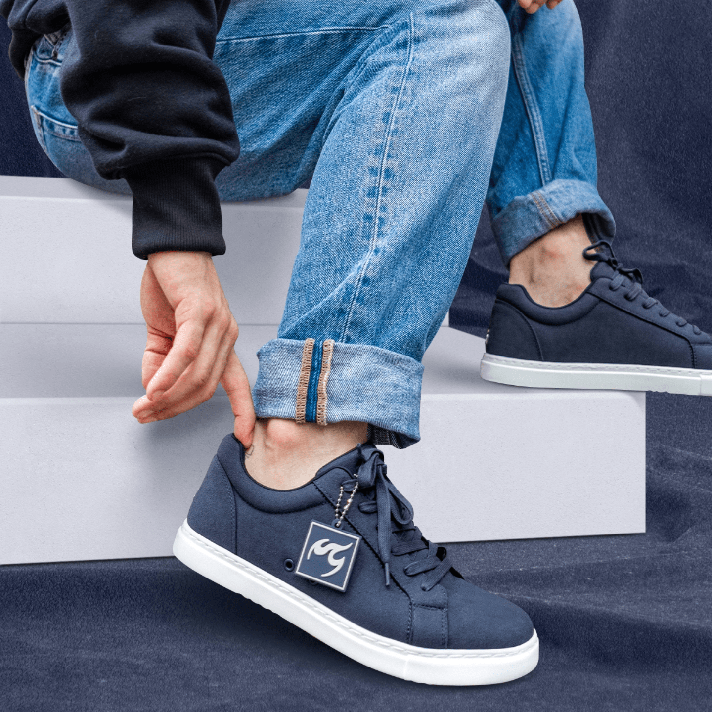 Navy Blue nizki čevelj je izdelan v globokih odtenkih semiša, ki jih navdihujejo neskončni obzorja in polnočnina nebo. Eleganten, a vsestranski, ta osnovni model prinaša prefinjeno samozavest v vsak korak.