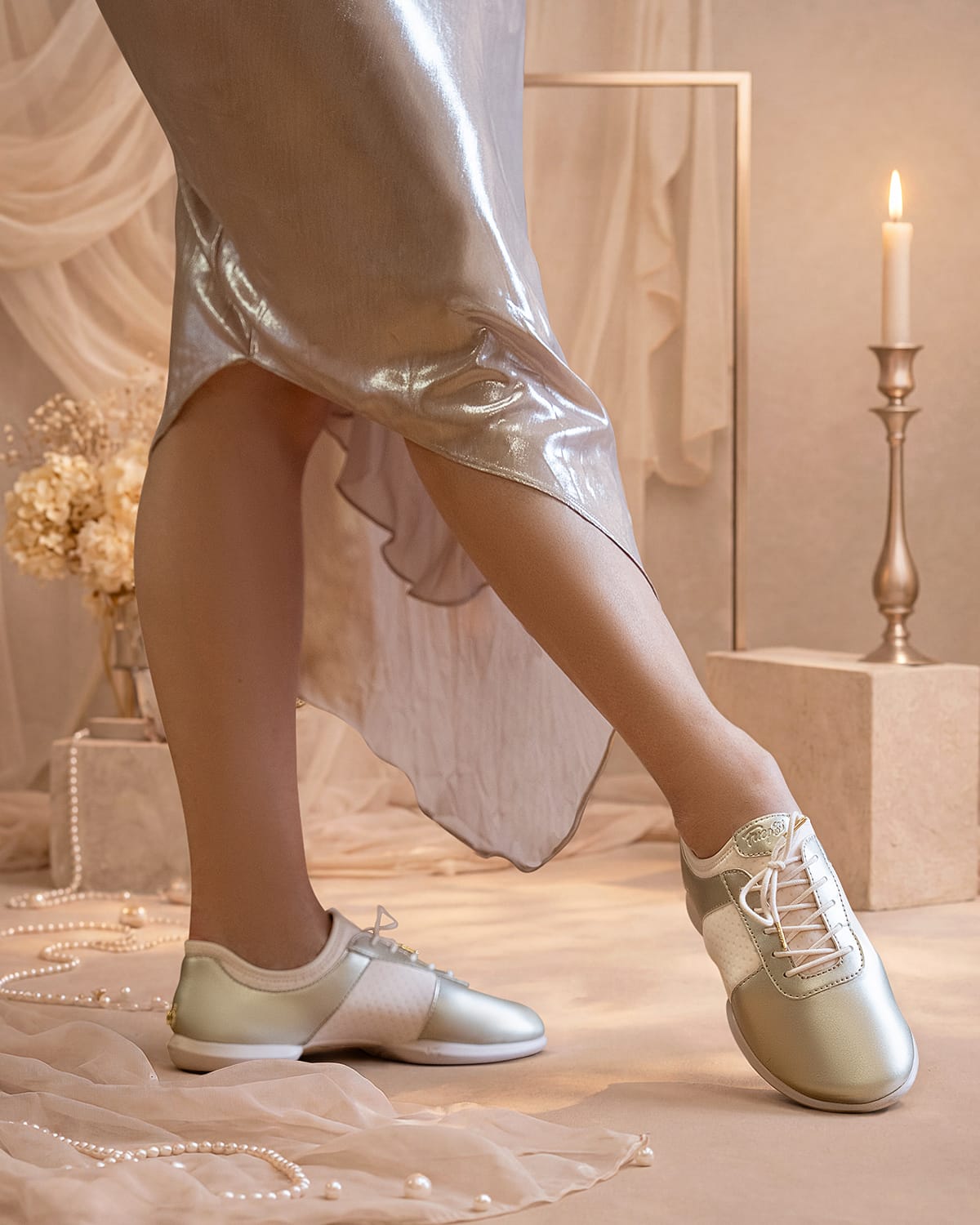 采用光泽香槟色素皮革制成,这款鞋型能够捕捉光线,使每一个伸展、转身和着地动作都清晰可见。分底设计让脚部自然活动——支持更完整的线条、精准的脚尖动作和流畅的过渡。外观精致,性能卓越,专为注重动作表现和清晰识别的舞者打造。